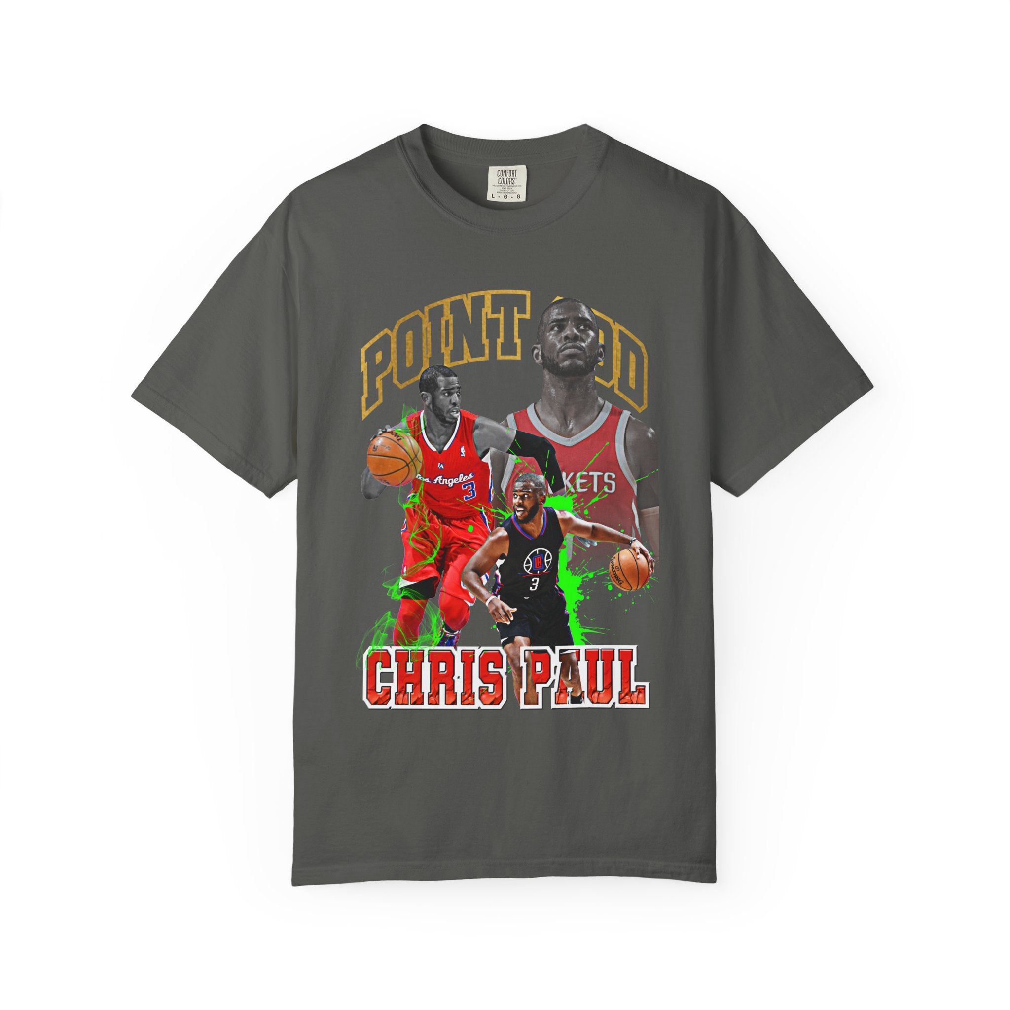 This relaxed-fit tee carries the energy of the court into everyday wear. A bold, action-packed graphic centers a dynamic player in motion, layered with strong typography and a vivid green motion trail that pops against the garment-dyed charcoal canvas. The heavyweight, garment-dyed cotton feels lived-in from the first wear — soft, slightly vintage, and built to age well. Wear it to watch parties, pickup games, or when you want to bring a sporty, street-ready edge to your day. It sits loose through the shoulders and body for easy movement and pairs effortlessly with jeans, joggers, or shorts.